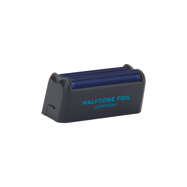 Testina Halftone Foil Gamma+ in titanio blu ipoallergenico garantisce una rasatura precisa, uniforme e delicata sulla pelle.