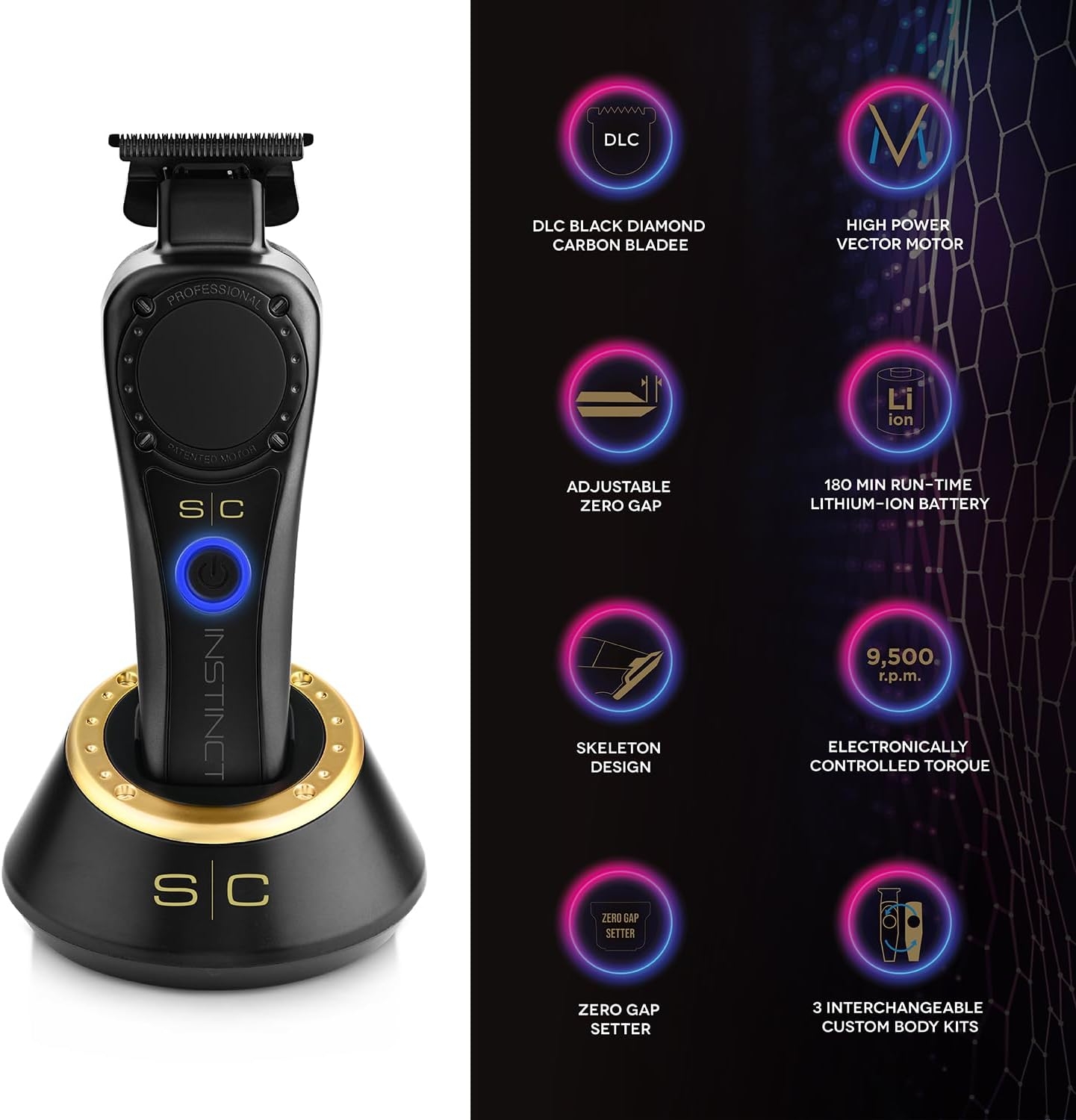 Stylecraft Instinct Trimmer combina motore vector ad alte prestazioni e lama avanzata per garantire contorni definiti, sfumature precise e tagli sempre uniformi.